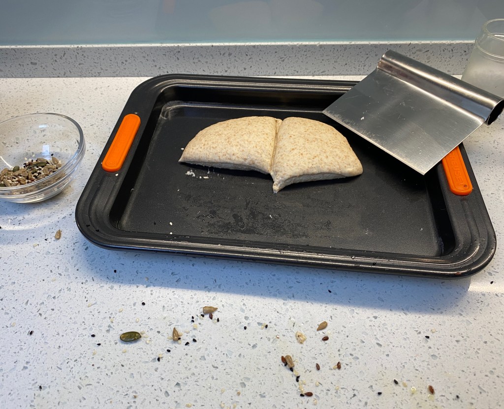 4. Pour a little bit of oil on a countertop and spread with a bit of the seeds mix.