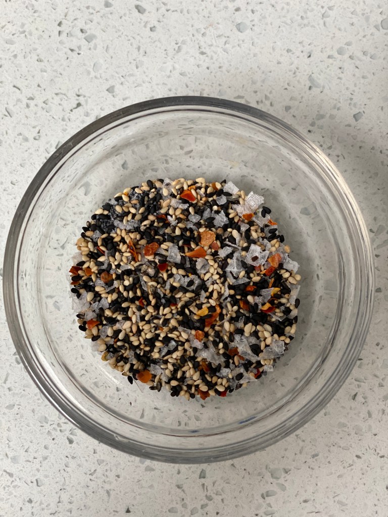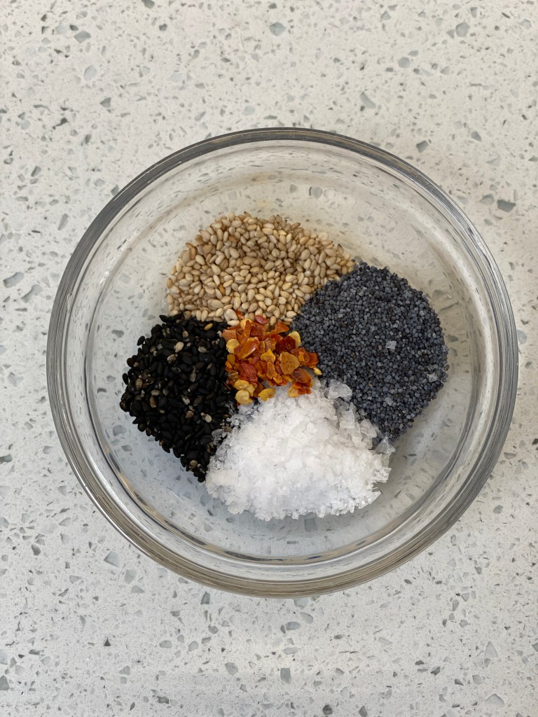 This is my version of Traders Joe’s “Everything but the bagels” seasoning. I omitted the dry onion and dry garlic, but you can add 1/2 tablespoon of each to the mix.