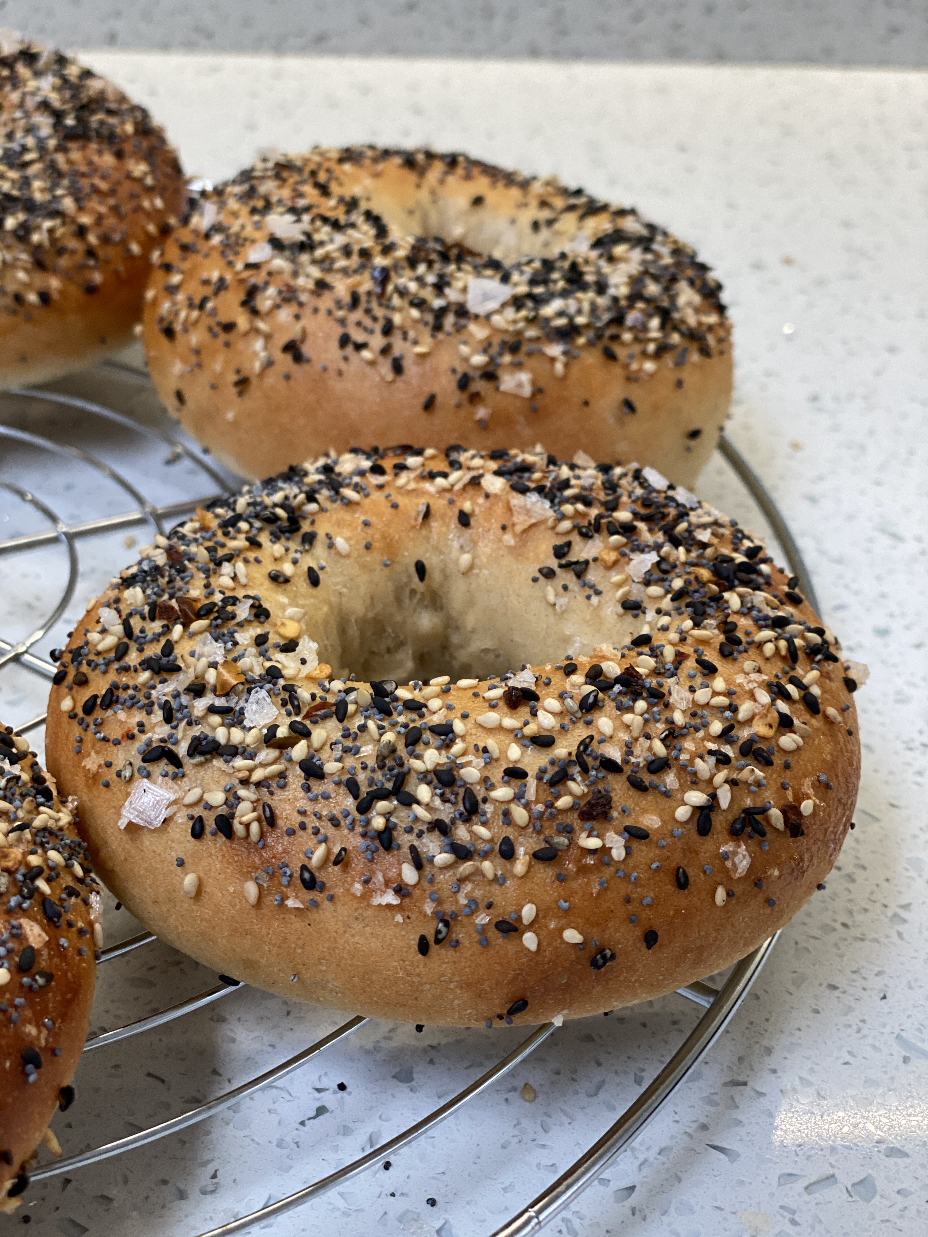 With the arrival of Covid-19, lockdown and no trips to the US, my bagels supplies quickly run out. I tried various bakeries in London and, although good, the bagels were far from the real thing, so I started looking at recipes and I found one that is as close as it can get!