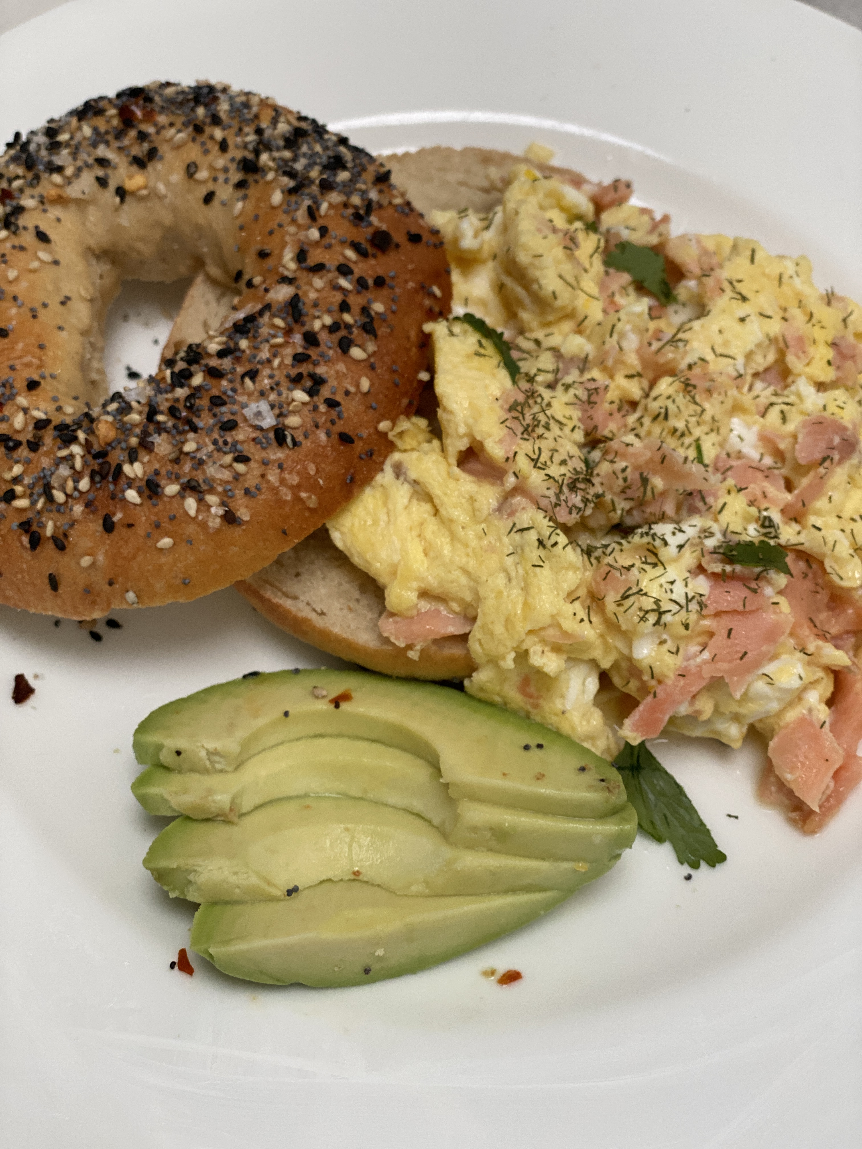 I love mine slighlty toasted with salmon and scrambled eggs!