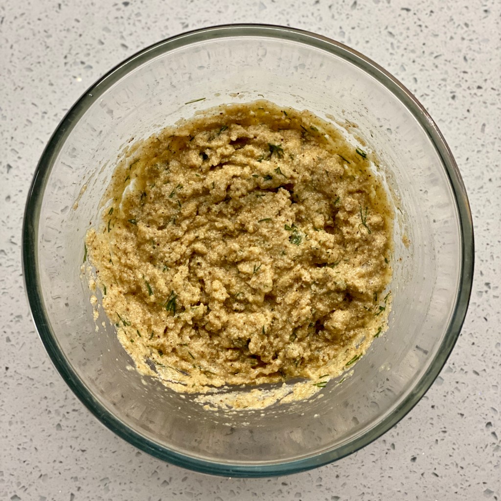 3. Add the egg mixture and the mice dill to the dry ingredients and stir to combine using a fork.
