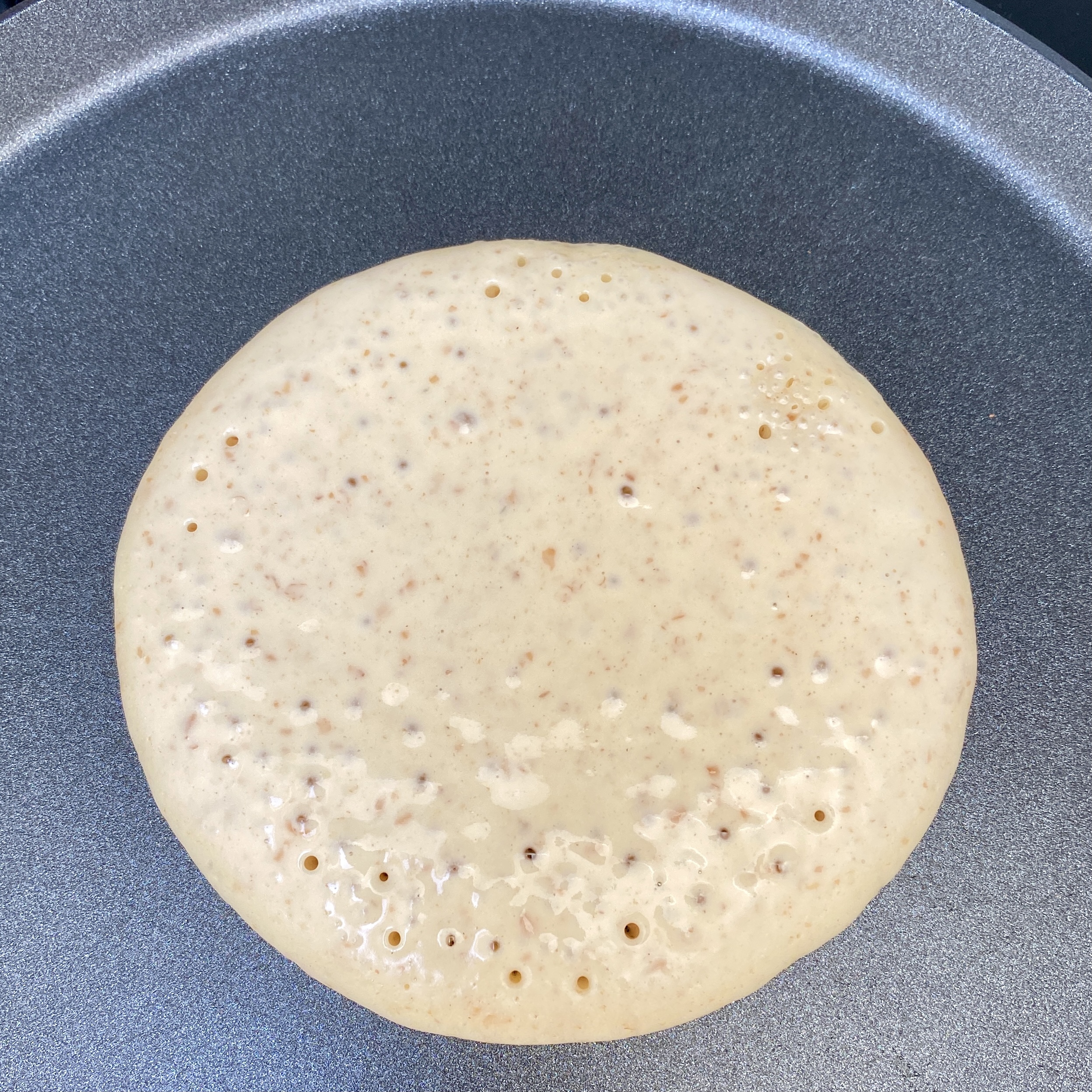 6. Warm up a pancake pan and spoon in about 1/4 cup of batter at the time. Cook for few minutes until you see bubbles, flip it and let it cook for one more minute. Repeat until you have used all the batter.